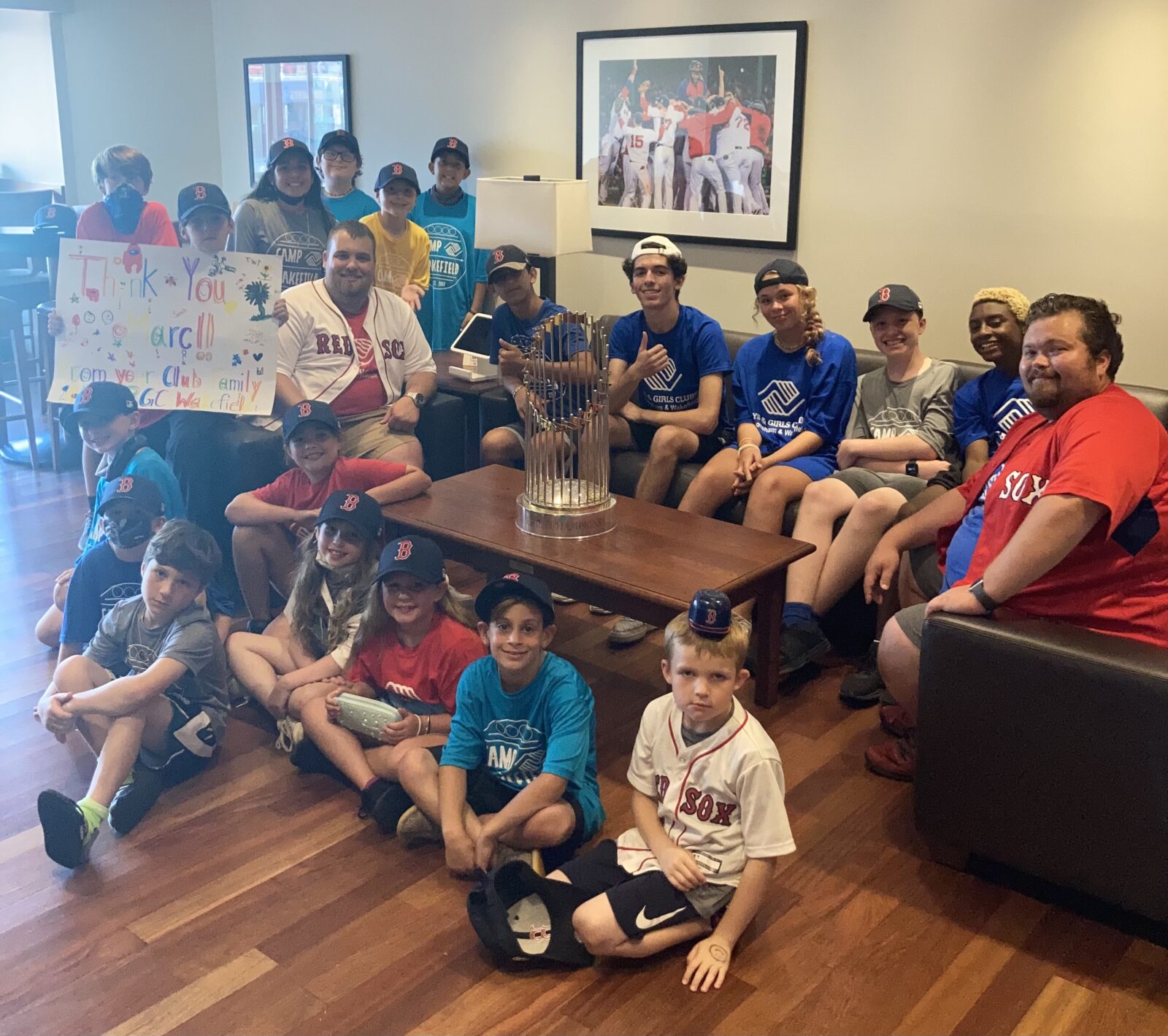 Included in this network is the Boston Red Sox. On August 22, Marc donated his suite/box at Fenway Park to members of the Boys & Girls Clubs of Stoneham & Wakefield for the Red Sox game. They were welcomed by the scoreboard, treated to catering, and even had a chance to take a picture with the World Series trophy.